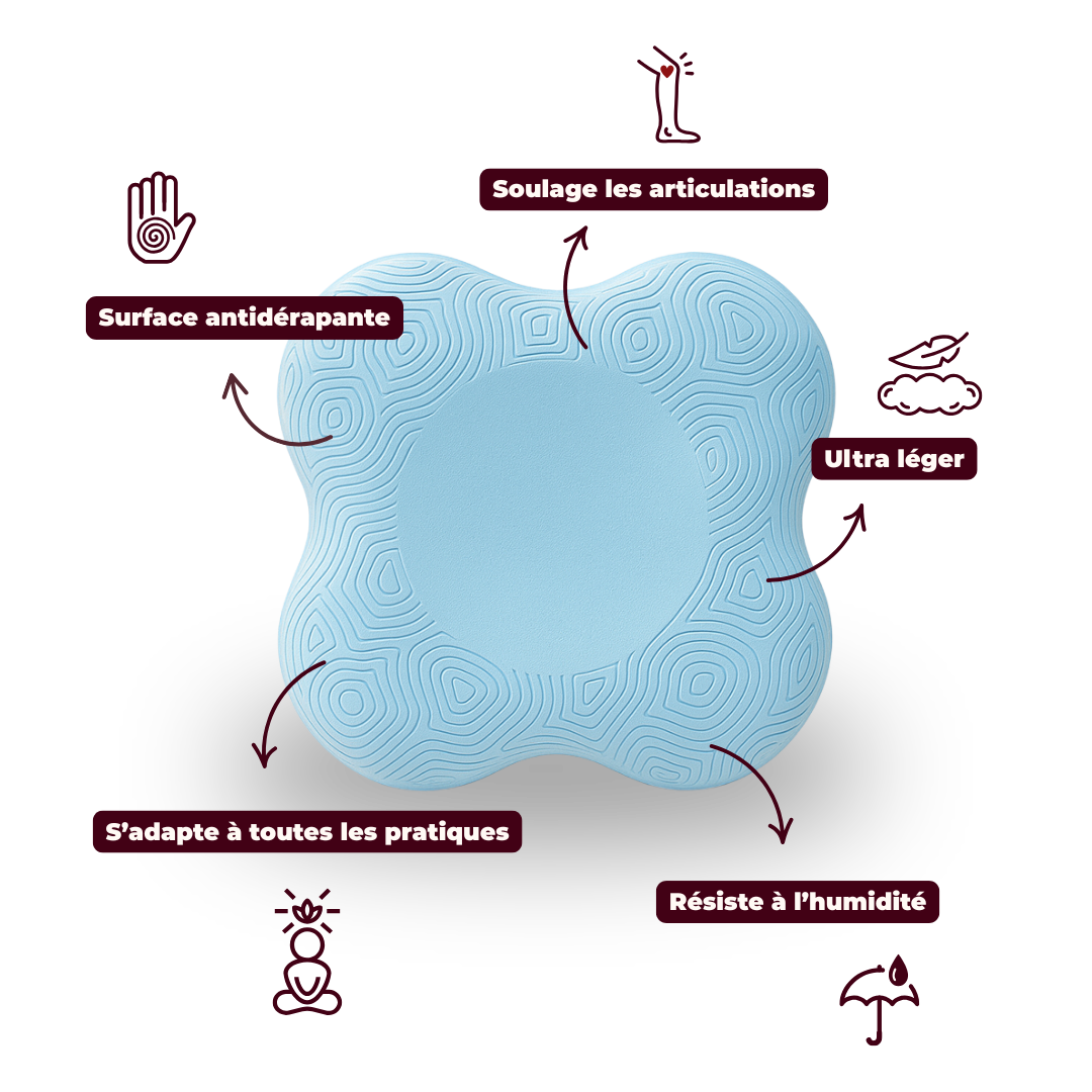 Fini les appuis douloureux pendant ta pratique. Ce pad de soutien protège tes genoux, poignets et coudes, pour des postures plus confortables.
